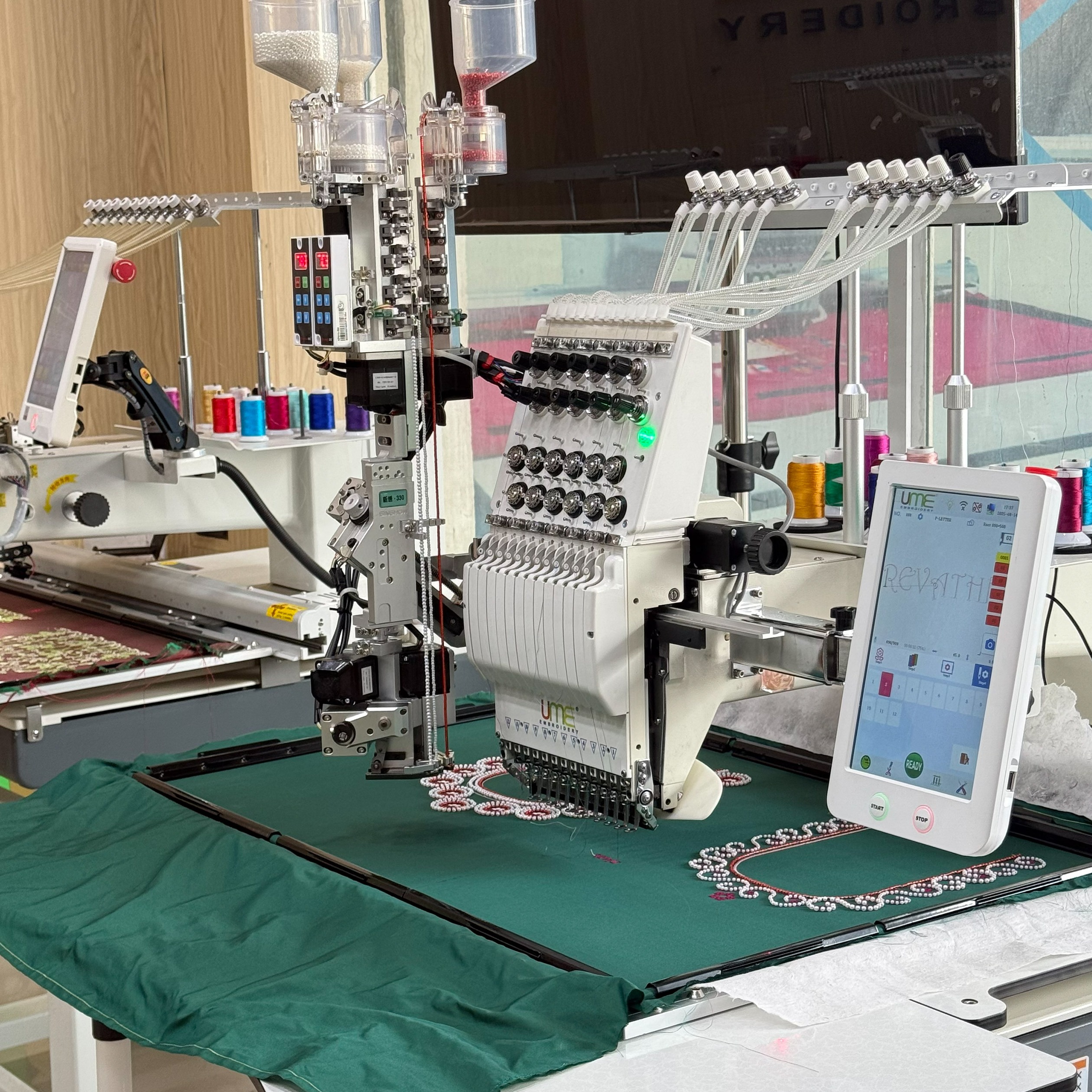 UME Beads Embroidery Machines are ideal for heavy maggam work, bridal sarees, and customized ethnic outfits. Built to handle decorative elements like beads and embellishments with precision, these machines deliver professional finishing. Each machine includes 5 years electronic warranty, 2 years mechanical warranty, and scheduled servicing every 4 months, along with AMC support after 5 years for long-term reliability.