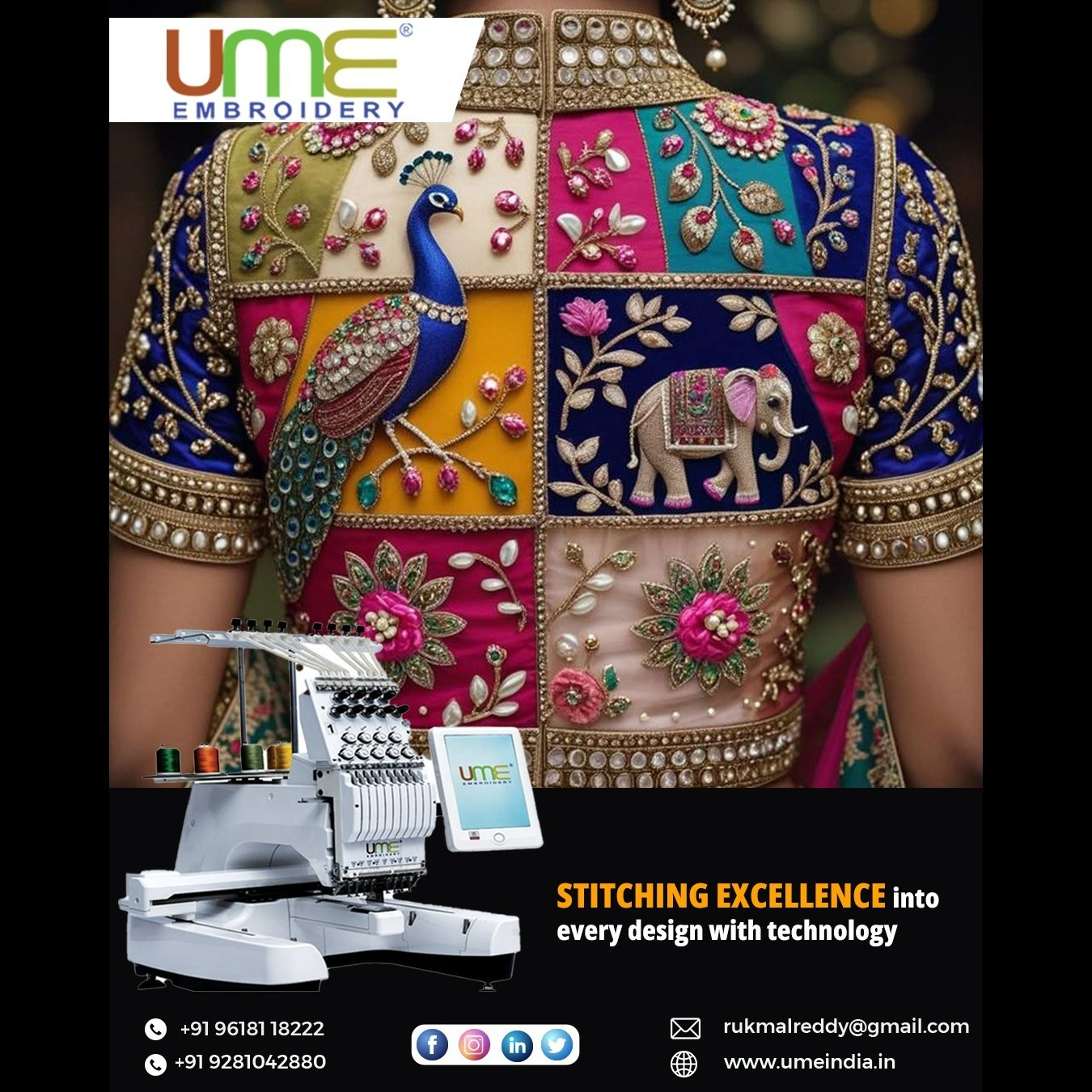 UME Computerized Embroidery Machines combine automation with precision, helping you manage designs, colors, and output efficiently. Ideal for modern tailoring businesses, these machines reduce manual effort and increase productivity. Supported by 5 years electronic warranty, 2 years mechanical warranty, and regular servicing, they ensure long-term growth.