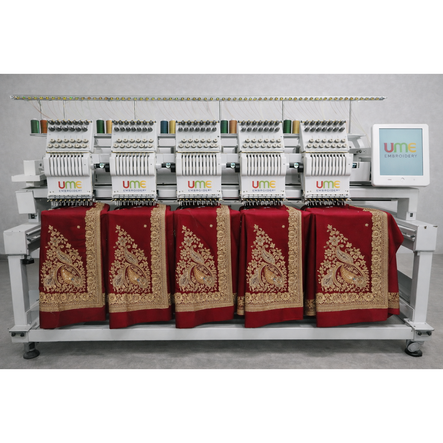 UME Multi Head Embroidery Machines are built for large-scale production where speed and uniformity matter most. Perfect for uniforms, sarees, and export orders, multiple heads allow simultaneous embroidery for higher output. Along with powerful performance, you receive 5 years electronic warranty, 2 years mechanical warranty, and regular 4-month servicing with AMC support after 5 years.